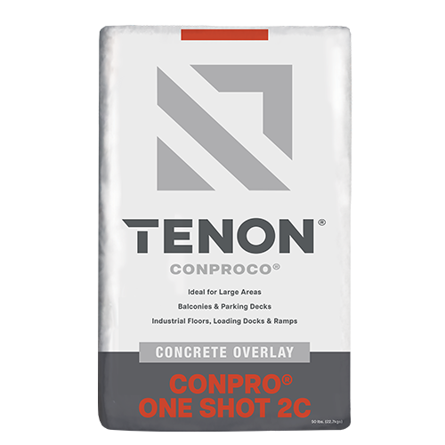Conproco® Conpro® One Shot 2C is a two-component, polymer-modified cement repair material for horizontal concrete surfaces. Kit includes 50 lb. bag of One Shot and 1 gal. container of K-88 Admix.