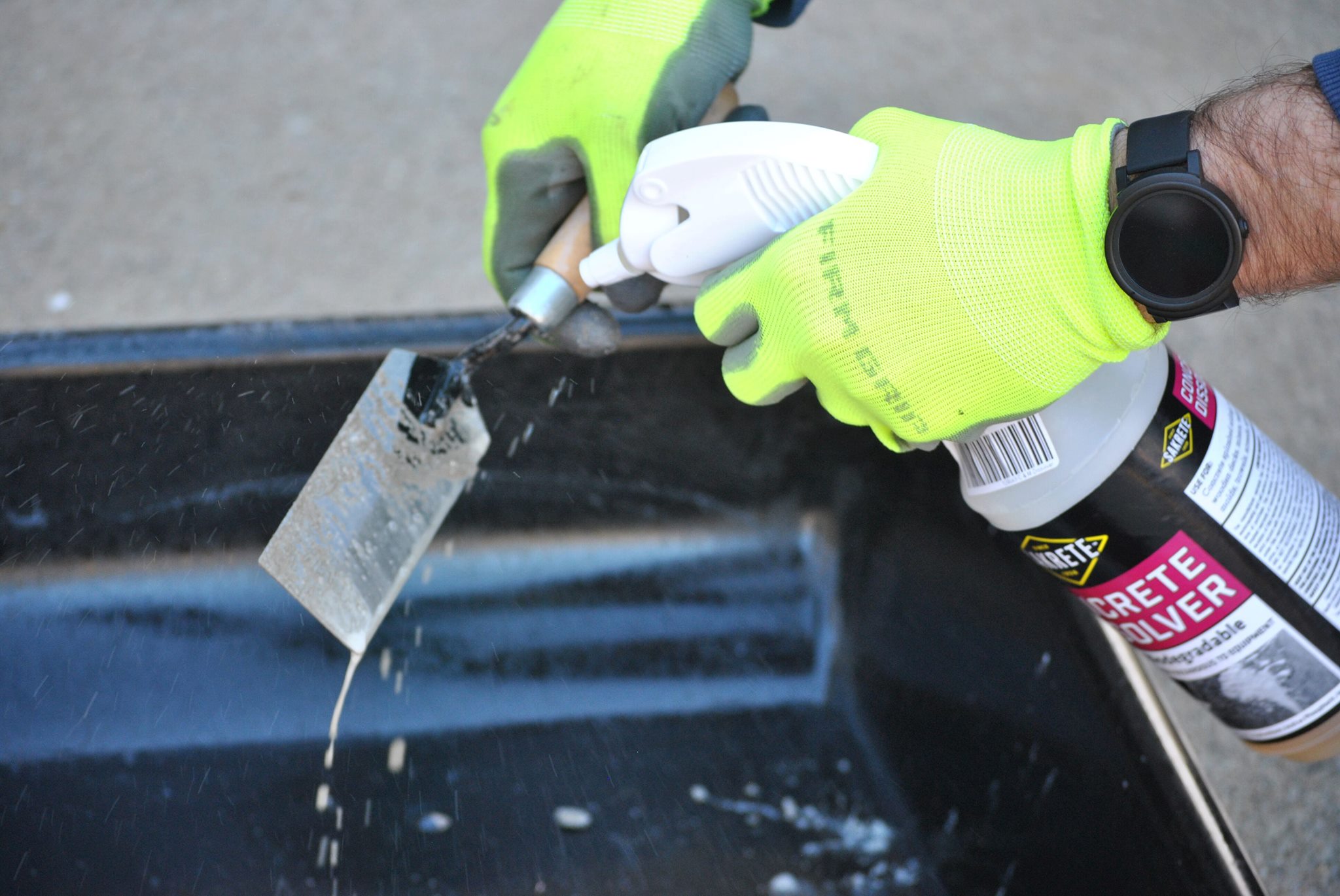 Sakrete Concrete Dissolver is the fastest, easiest way to remove dried concrete from your tools. This pro-grade, biodegradable cleaner removes concrete, mortar, stucco and cement in minutes, making it the perfect clean-up solution for every concrete job.