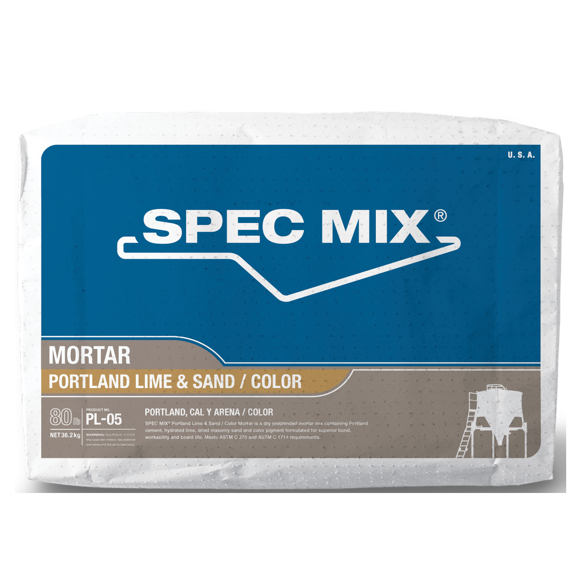 SPEC MIX® Mortar with Color is a dry, preblended mortar made with Portland cement, hydrated lime, masonry sand, and pigment for strong bond, good workability, and long board life. It meets ASTM C270 and C1714 and is available in Types N, S, and M, with optional Integral Water Repellent (IWR) and 3,000-lb bulk bags for silo use. For best color consistency, TCC recommends mixes with 2% or more pigment, as 1% color can vary due to cement shade, jobsite conditions, and masonry unit type.