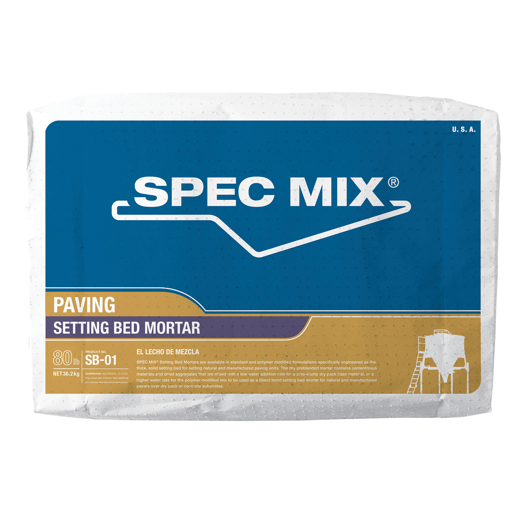 SPEC MIX® Setting Bed Mortar is an engineered, dry preblended mix for creating thick, solid mortar beds under natural or manufactured pavers. Its zero-slump, low-water dry pack formula ensures a consistent, high-quality base that boosts contractor productivity on every job.